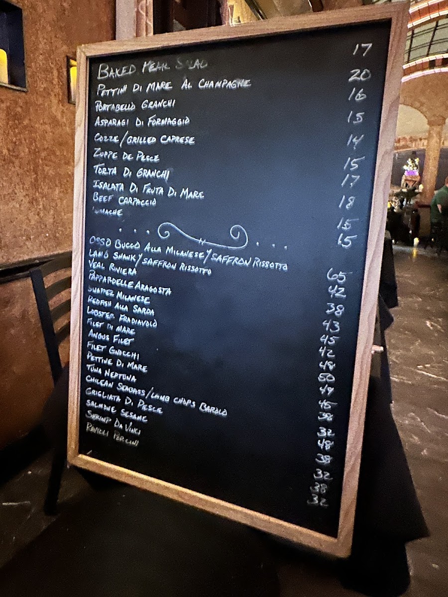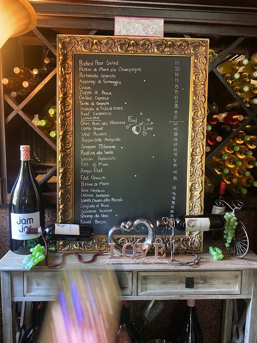The menu also includes a variety of small plates and appetizers, such as Bruschetta and Mussels, which pair nicely with the selection of drinks from sparkling Champagne to classic soft drinks. For those who save room for something sweet, desserts like Creme Brulee, Cannoli, and Nutella Cheesecake offer a satisfying end to the meal without overwhelming.