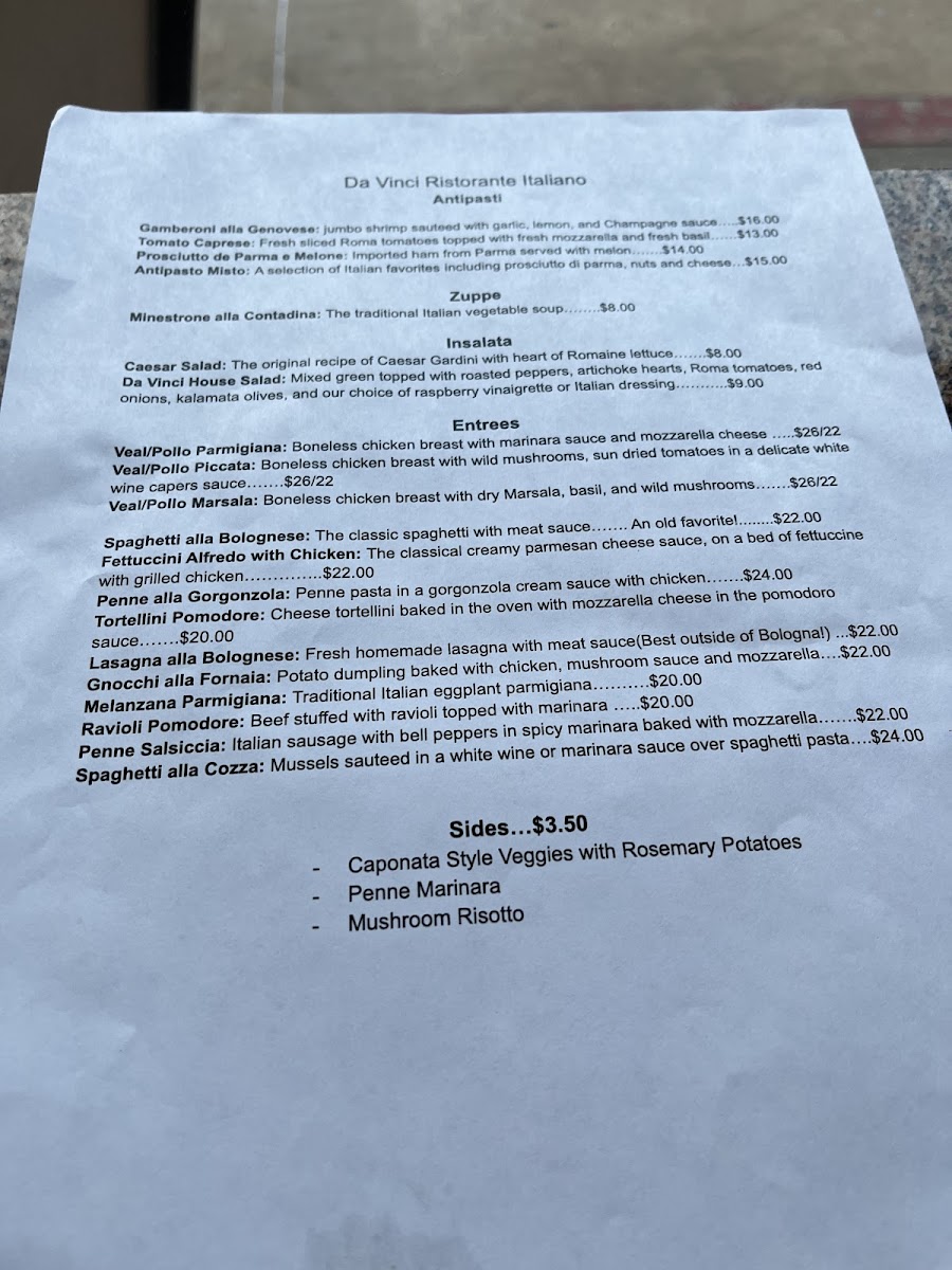 Whether lingering over dinner or picking up a to-go three-course special, the food here complements Da Vinci’s cozy atmosphere — blending casual comfort with subtle elegance in every bite.